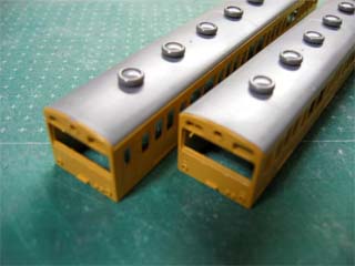 屋上機器は、ベンチレーターのみ灰色で塗装。本来は、屋根板もダークグレーで塗装したほうが良いだろうが、今回は省略。